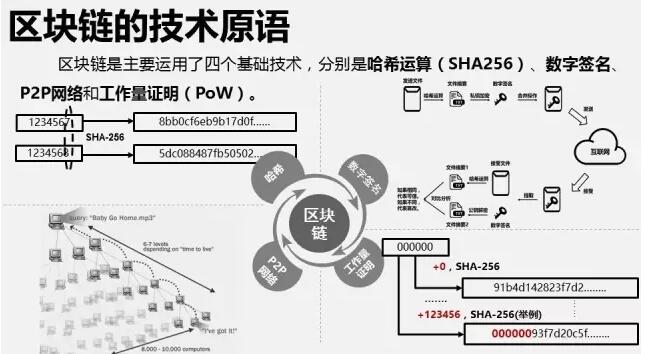 区块链是主要运用了四个基础技术,分别是哈希运算(SHA256)、数字签名、P2P网络和工作量证明(PoW)。