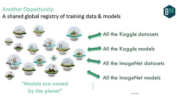 我们无需停留在数据集层面;我们也可以包括从这些数据集中建立起来的模型。抓取和运行他人的模型并提交自己的模型应该很容易。一个全球性的数据库可以大大方便这一过程。我们可以得到行星所拥有的模型。