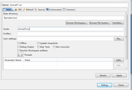 如果是第一次运行,会弹出下面对话框。在goals框加加入以下命令: tomcat7:run