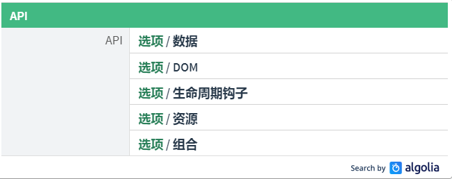 options 对象的具体可选属性有很多,具体可分为五大类,可在 vue.js 官网查看到,如下:
