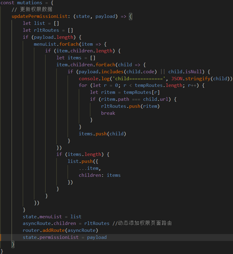 登录后,通过调用vuex中的方法,完成获取权限code,动态筛选权限路由页面操作,然后通过router.addroute()将有权限菜单添加到路由中,进入动态添加的路由页面,刷新页面出现404