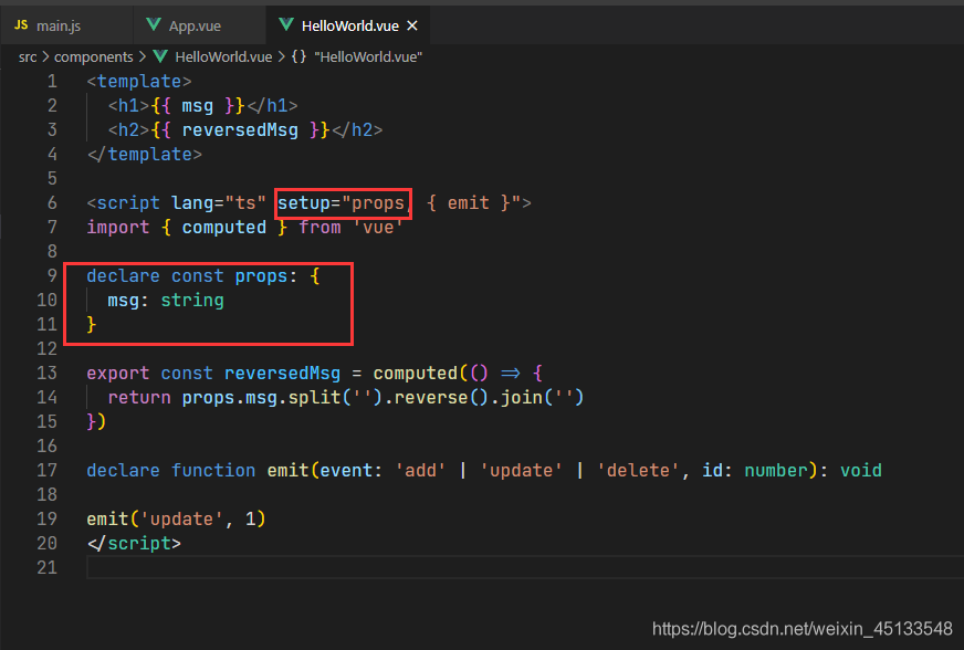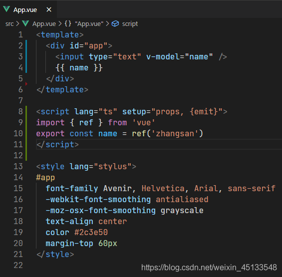 这是兼容vue2.0的语法,下面是vue3.0 rfc写法(还处于实验性阶段)。