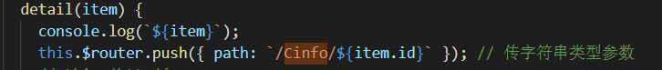 在path属性中加入'/:id‘,并新加name属性,目的是实现在跳转时将url后添加id,从而进入不同的子详情页面