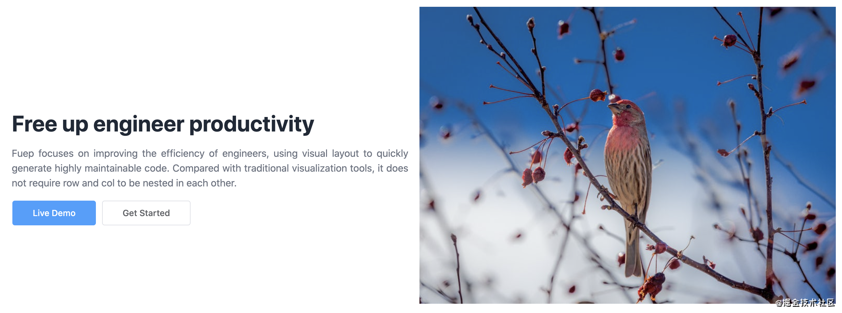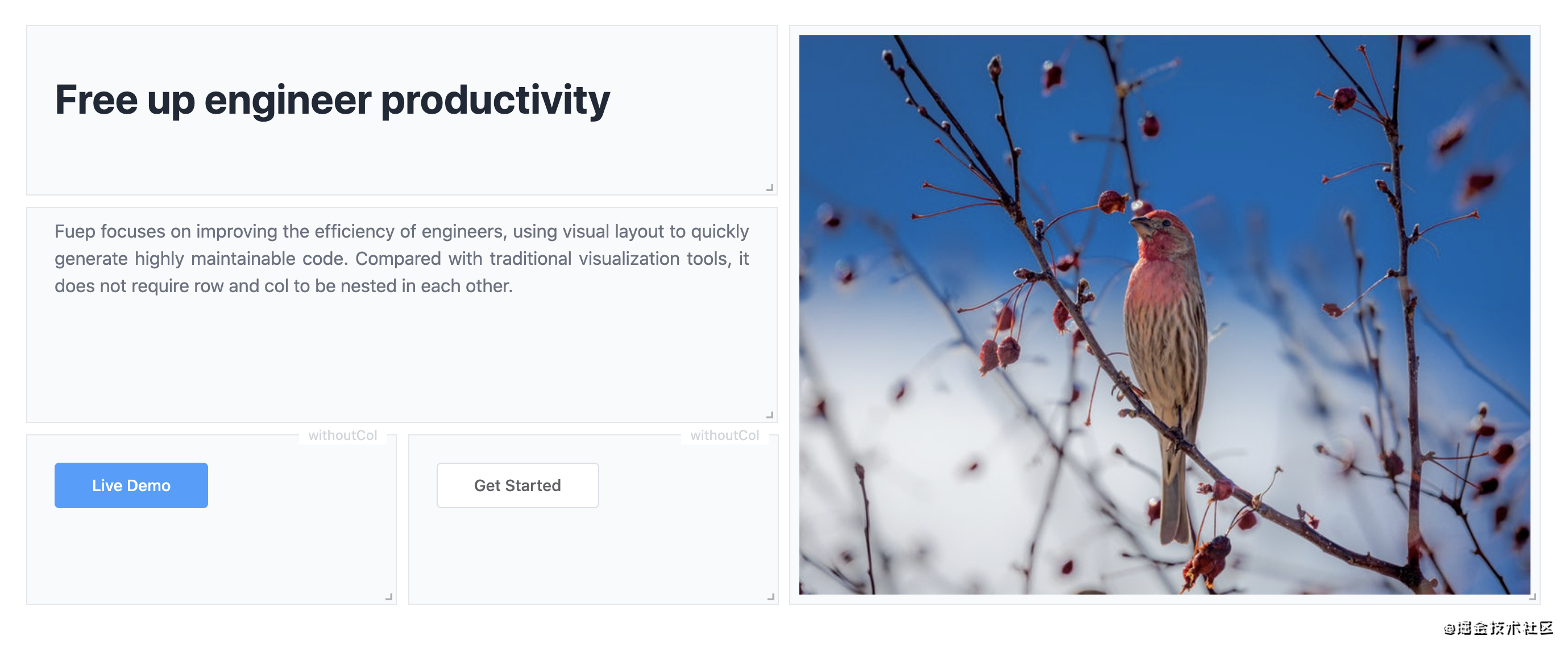 <p class="px-4 text-base text-gray-500 text-justify">fuep focuses on improving the efficiency of engineers, using visual layout to quickly generate highly maintainable code. compared with traditional visualization tools, it does not require row and col to be nested in each other.</p>