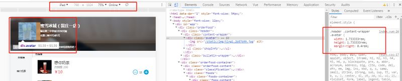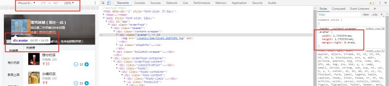 代码中头像宽高样式为130px,项目是以750px的设计稿为例,
