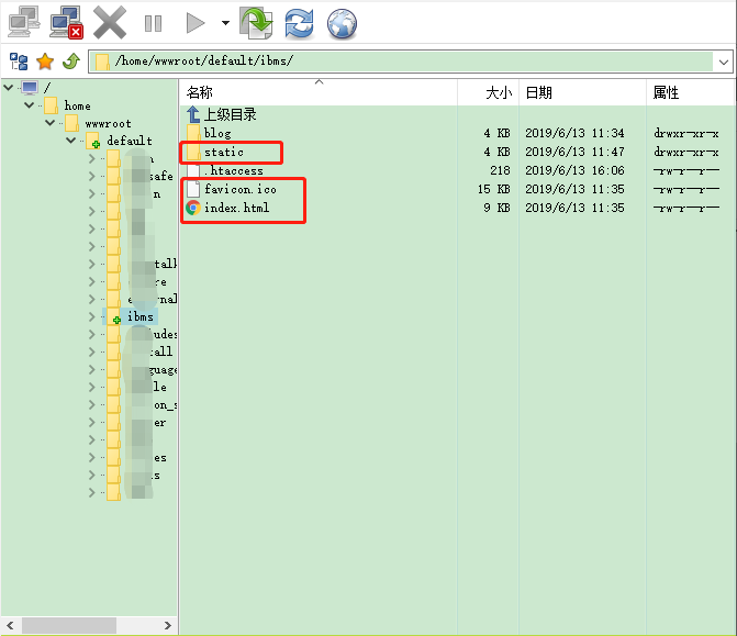 然后就是把这些文件丢到服务器上的某个文件夹下,我这里的文件夹名字是ibms