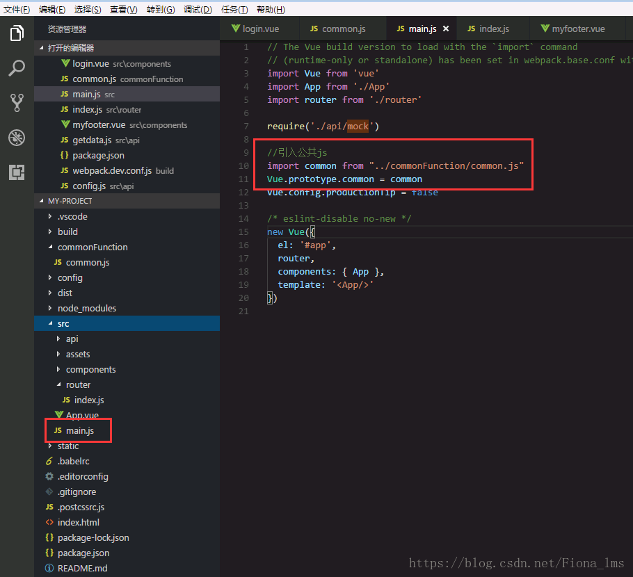 建立好之后,在main.js里面引入这个公共方法