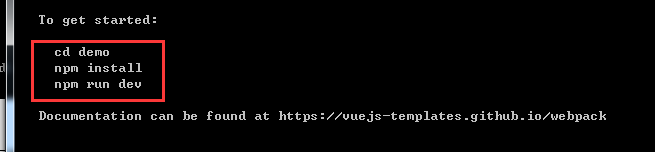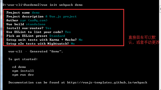 执行命令: vue init webpack demo(你新建的项目名称/文件名称)