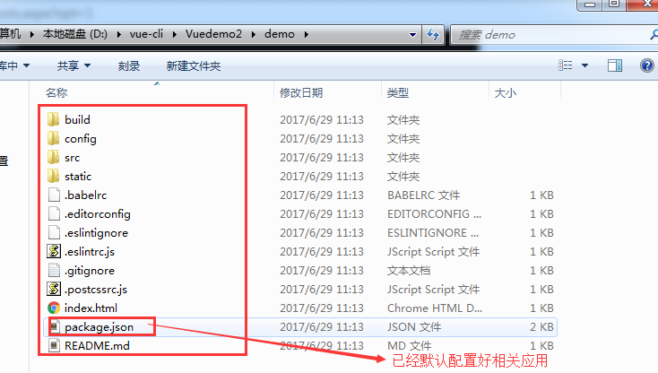 手动打开demo文件夹 可以看到 已经初始化好了 一个基本的项目: