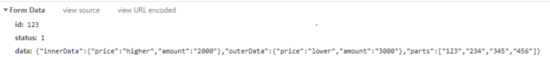 完成第一步后,可以实现post请求了,请求体为formdata的格式,但如果reqdata是一个对象嵌套数组的复杂对象,form的格式会变得非常不直观。如果此时后台需要将对象整个储存起来,以便下次拉取数据渲染前端页面,则会增加很多额外的转化工作。