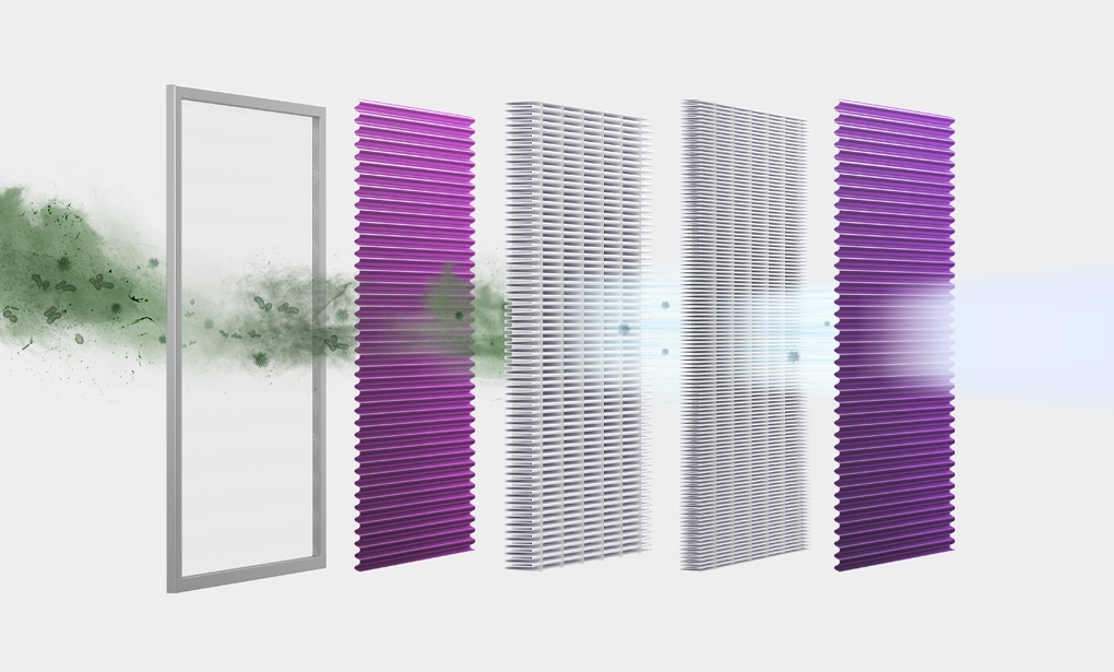 5重高效过滤设计:添加抗菌防霉涂层,抗菌率>99.99%、抗病毒涂层,抗菌率>99.99%、一体集成中/高效滤网,滤效高达99.98%、一体式滤芯设计,长效经济,更换更方便。