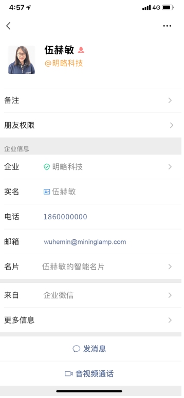 在用户添加员工企业微信好友后,企业微信支持展示并定制该企业员工详情页信息,在升级过后,可根据不同部门批量配置员工对外信息,包括小程序、H5等形式,充分体现企业及导购个性。