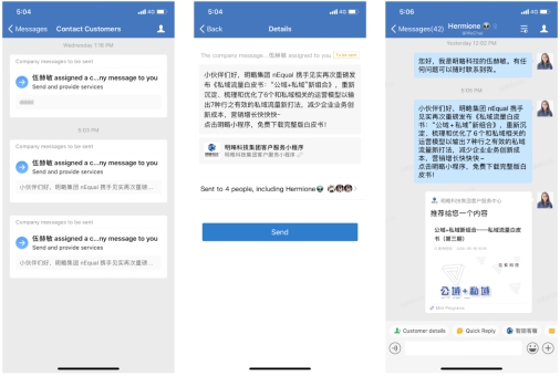 企业微信支持对选定员工或客户标签下发信息群发任务,当员工在企业微信收到任务通知时,可在后台设置定时发送,从而对指定客户/客户群批量发送消息,并且在群发后还会统计任务发送成功、失败状态。这就意味着当企业将用户变为好友后,便可以针对用户的喜好精准化运营。