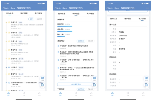 由于企业微信覆盖的消费者行为链路较为复杂,所以需要更为详尽的客户管理功能,例如,综合管理员工客户线索、实时客户互动轨迹同步、客户个人详情等,并基于此功能下的用户行为数据构建360°用户画像。在拥有用户画像后,,导购可为客户打上企业标签及自定义标签,并将其同步部门管理员客户信息系统,部门管理员可给予更高维度的客户属性批量管理客户标签,再次下发至员工企业微信客户端,以此形成闭环标签体系,实现企业CRM体系与企业微信标签体系的打通。