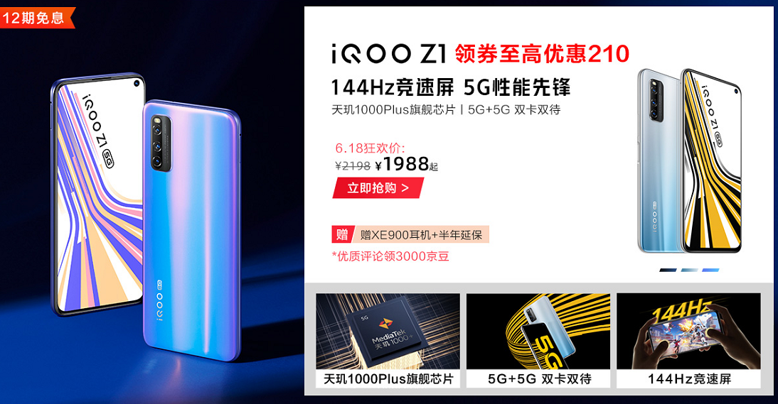 4G价格入手爆款5G手机,iQOO Z1到手1988,还有新配色