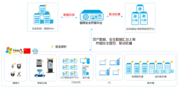 泛终端全面接入--本地办公主机、业务服务器、智能业务终端、边缘物联代理终端全面安全接入,实现统一物联管理;提供全场景安全防护架构,泛在连接、开放共享,端点安全数据一次采集多次使用。