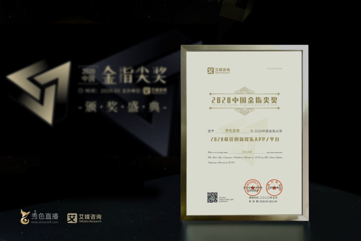 经过两个多月的角逐,秀色直播从近700家参选企业中脱颖而出,荣获“2020最佳创新娱乐平台”大奖。