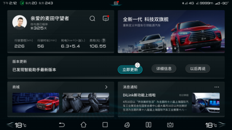 DiLink3.0是比亚迪智能网联系统的全面升级,在原有系统的基础上,DiLink3.0新增全新DiUI平台,形成了包括Di平台、DiUI、Di生态、Di云、Di开放在内的五大能力平台,并对五大能力平台进行针对性突破,实现多个业内首创和行业领先。