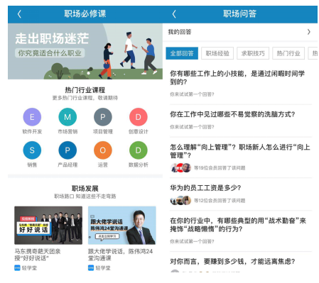 例如在制定求职目标时,领英建议职场新人先问自己几个问题:我的技能是否满足了这份工作的要求?这份工作有继续学习和成长的空间吗?这类职场常见问题同样可以在领英“职场问答”功能里获得答案。同时,职场新人们也可以发起新问题,查看有真实姓名及背景资料的领英会员的回复,并进一步和他们在领英平台上交流并积累人脉。