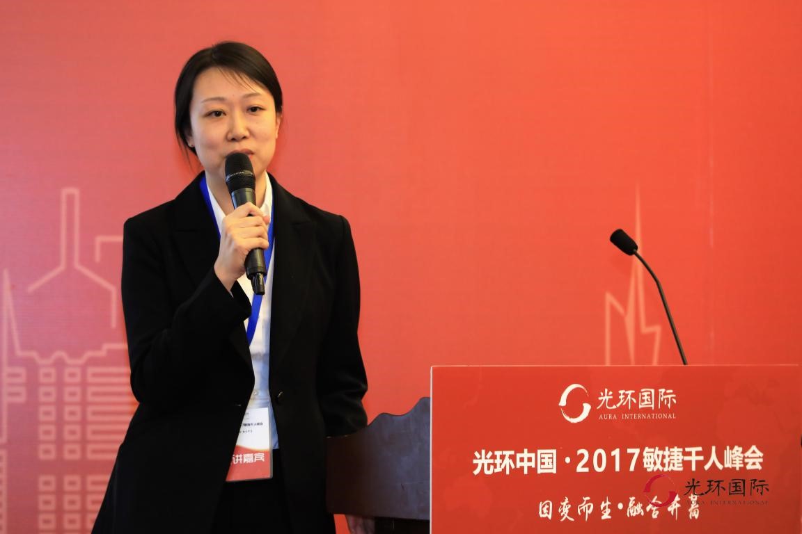 现任安邦集团PMO、敏捷教练、企业大规模敏捷转型的推动者和实践者杨眉女士以《端到端的大规模敏捷实践》为题,分享安邦集团用敏捷开发+Design Thinking+SAFe规模化敏捷框架+DevOps,解决企业转型期打造IT核心能力,缩短交付周期,提升客户满意度的最佳案例,将本次峰会推向了新高度。