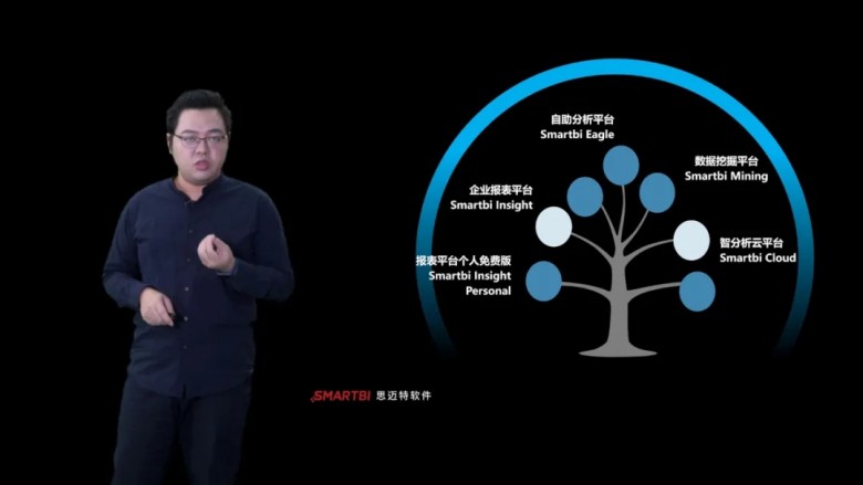 接下来,思迈特软件产品总监杜健航为大家详细介绍了Smartbi产品线的发展规划和未来部署,并介绍如何通过这些产品给业务赋能,带给企业更科学的决策管理。
