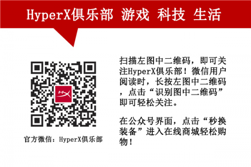 欢迎关注HyperX俱乐部微博(http://www.weibo.com/HyperXclub)与微信公众平台(微信号:HyperXclub),参加最新活动,交流产品心得。