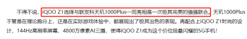 从评价可以看出iQOO Z1获得如此多的好评离不开天玑1000Plus的强力支撑。甚至可以说天玑1000Plus本身就是iQOO Z1最大的亮点和卖点。