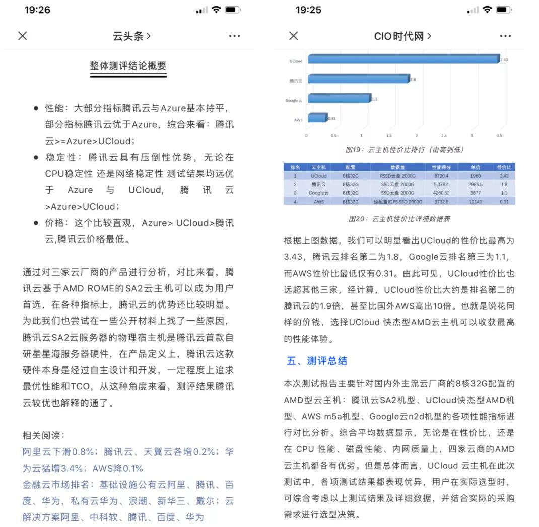 两篇相似主题文章,腾讯云SA2与UCloud快杰型云主机均位列其中,而性能/价格的结论却大相径庭。