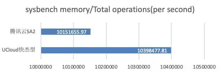 测试结论可见,相较腾讯云SA2机型,UCloud快杰云主机领先3%。