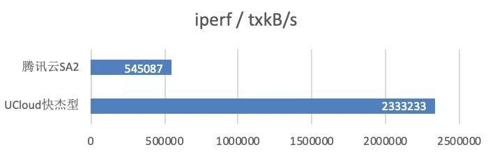 测试结果可见,UCloud快杰云主机的网络吞吐能力大约是腾讯SA2型的 4.3 倍。
