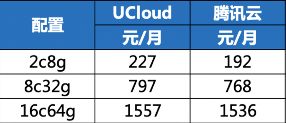 如此图所述,UCloud快杰云主机的月单价看似均高于腾讯云。但通过UCloud控制台上直接查看三个配置的价格,却会发现事实不是如此。