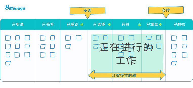 常见的白板自动化工具有两种:基于手动输入自动绘制的甘特图或调度图,用来提供项目活动时间范围和依赖关系的图形视图,以及基于手动输入自动放置和替换不同便利贴(代表活动)的看板工具,用来提供项目活动状态的图形视图。