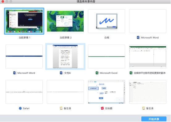 小鱼易连无线云投屏的Windows和Mac电脑端可以选择共享的具体内容,包括桌面、某个软件、白板等,选好后展示设备上只能显示已选的共享内容,用户在本机上的其他操作均不会在大屏幕上显示。