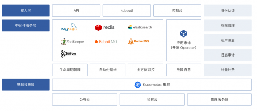 作为基于Kubernetes构建的云原生中间件PaaS平台,轻舟中间件将提供RDS MySQL、RocketMQ、RabbitMQ、Kafka、Redis、Elasticsearch 等中间件,覆盖企业常用的数据库、缓存和消息等中间件,为企业数字化创新提供高 SLA 保障、高性能、低成本的企业级中间件。