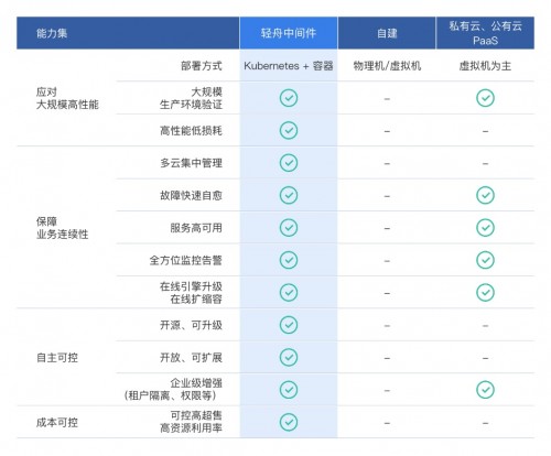 相较于传统中间件,轻舟中间件在SLA保障、性能、成本等方面亦有突出表现: