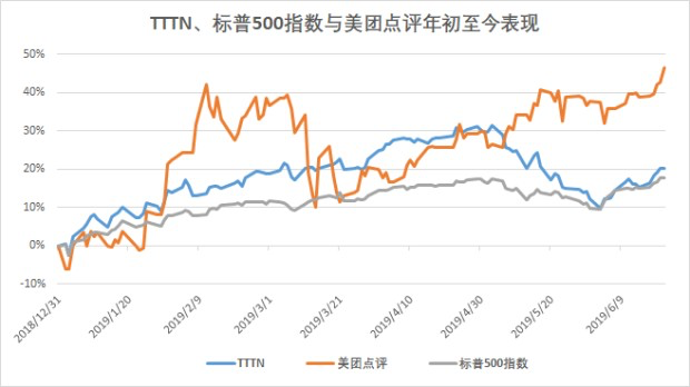 (图:TTTN、标普500指数与美团点评2019年初至今表现)