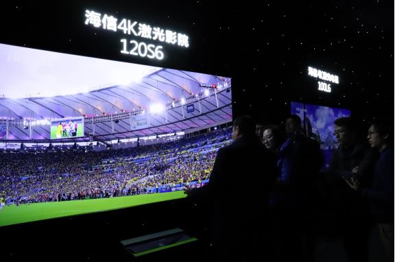 LED背光液晶电视技术已应用近十年,如何适应未来大屏化彩电消费趋势,打破“屏”的限制,是彩电行业有待解决的问题。11月23日,电视行业领跑者海信在北京鸟巢隆重发布了88吋、100吋L6系列4K激光电视,以及可以完美组建家庭影音室的120-150吋S6 系列4K激光影院,海信用行动再次表明其对激光电视路线的坚持。