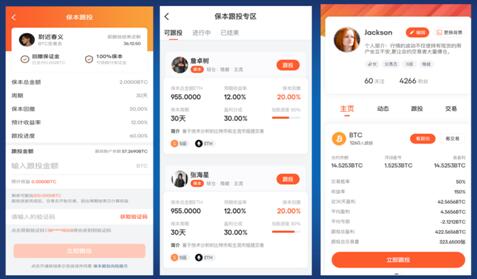 除此之外,币琼斯平台汇聚了一大批业内资深交易大咖,凭借其过硬的操盘经验,专业能力,行情分析预判能力,以及数据采集、分析、预测等,为用户降低交易成本,降低新人合约操作的各类门槛,避免新人因不了解行情,行情分析不透彻、掌握数据信息缺乏,而错失机会、行情误判等情况的发生,是新手学习合约操作、稳妥合约交易的最佳选择。目前,BITJOYS币琼斯拥有普通跟投交易机制和保本跟投交易机制,可为跟投用户提供简单快捷、灵活跟投、风险可控的跟投操作模式。
