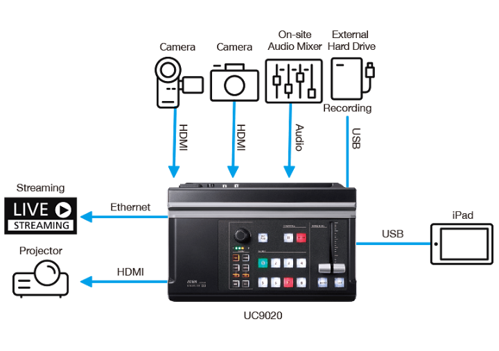 ATEN宏正UC9020有针对性应对远程教学中多场景的移动直播、入门门槛低、一站式解决方案等需求,以简易的直播操控解决方案有效帮助学校或者培训机构完成直播教学。