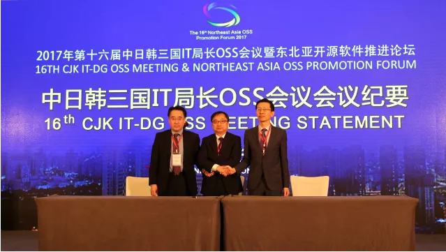 ▲图 《中日韩三国IT局长OSS会议纪要》签署仪式