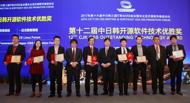 ▲图 “第十届中日韩开源软件特殊贡献奖”“第十二届中日韩开源软件技术优胜奖”颁奖仪式