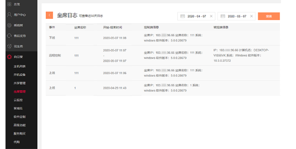 或者查看当前座席的远程日志信息,比如什么时间远程了哪个用户、用户设备的信息以及远程该用户的企业设备信息。