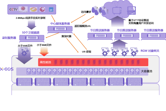 X-EOS还提供了自带负载均衡功能,有效减少存储服务器资源的浪费,为局方实现了存储资源利用的最大化;此外,XSKY还协助局方改造推流业务平台,使其支持S3接口,构建私有云S3集群,以支撑上百个频道的高带宽访问。