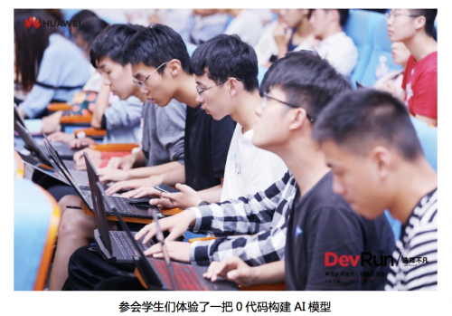 不同于常规的讲座分享会模式,此次高校行活动,华为云技术专家们精心设计了实操环节。ModelArts练手环节,这个斯坦福 DAWNBench 深度训练及推理榜的双料冠军的产品,让学生亲身体验“推理速度比亚马逊缩短 4 倍,比谷歌缩短 9.1 倍”的技术实力,参会学生也快速操作并实现0代码构建AI模型。