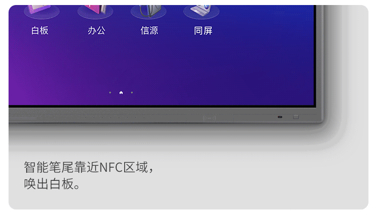 M4还推出了新款智能笔,智能笔新增了顶部按键和NFC电子标签,顶部按键可以实现一键批注,将智能笔贴近右下方NFC区域,轻轻一碰白板立即调出,方便快捷。