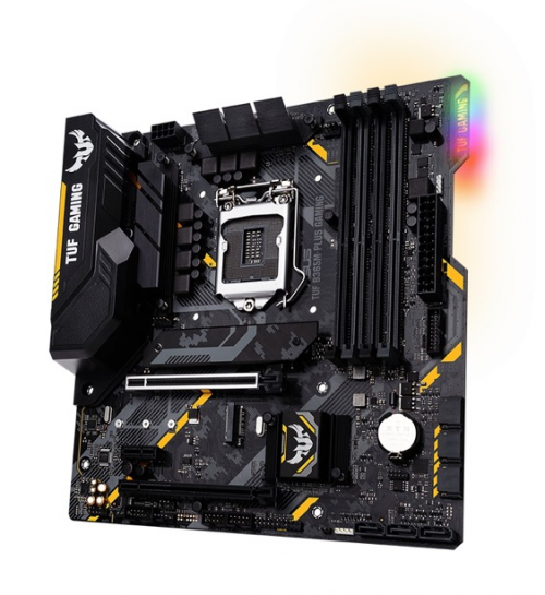 华硕TUF B365M-PLUS GAMING电竞主板不仅性能一流,同时也拥有炫酷的外观。采用兰博基尼黄配色,再加上军事迷彩元素,沉稳大气的同时不失前卫潮流。且PCB边缘设有靓丽的AURA RGB电竞氛围灯,1680万种色彩,配合AURA SYNC神光同步技术,可与相关兼容设备实现联动,轻松打造一体化整机灯效,营造绚丽的视觉盛宴。