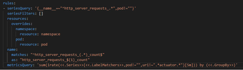 在 Kubernetes中,HPA 通常通过 Pod 的 CPU、内存利用率等实现,但在 Java 中,内存控制通过 JVM 实现,当内存占用过高时,JVM 会进行内存回收,但 JVM 并不会返回给主机或容器,单纯基于 Pod / CPU 指标进行集群的扩缩容并不合理。我们通过 Prometheus 获取 Java 中 http_server_requests_seconds_count(请求数)参数,通过适配器将其转化成 Kubernetes API Server 能识别的参数,并基于这一指标实时动态调整 Pod 的数量。