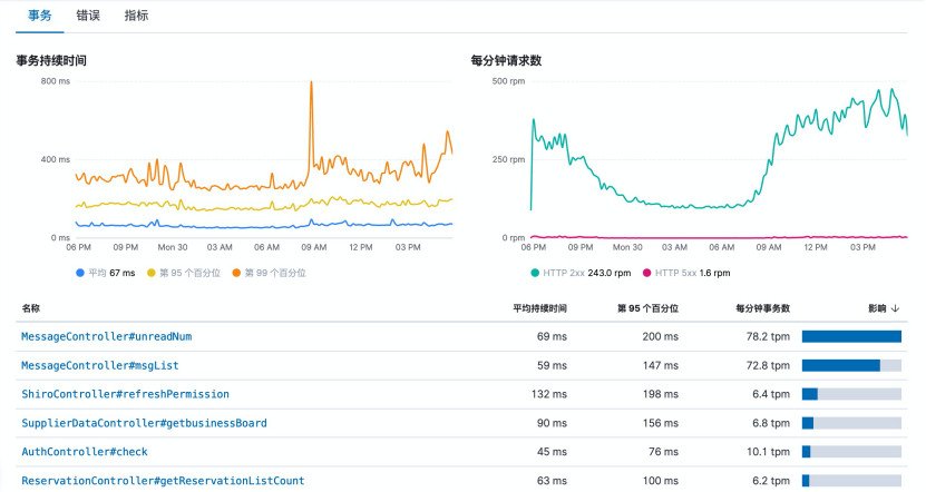 我们设置了响应时间、请求数、JVM Memory、JVM Misc、Garbage Collection 等一系列详尽的参数,为问题解决、业务优化提供可靠的依据。
