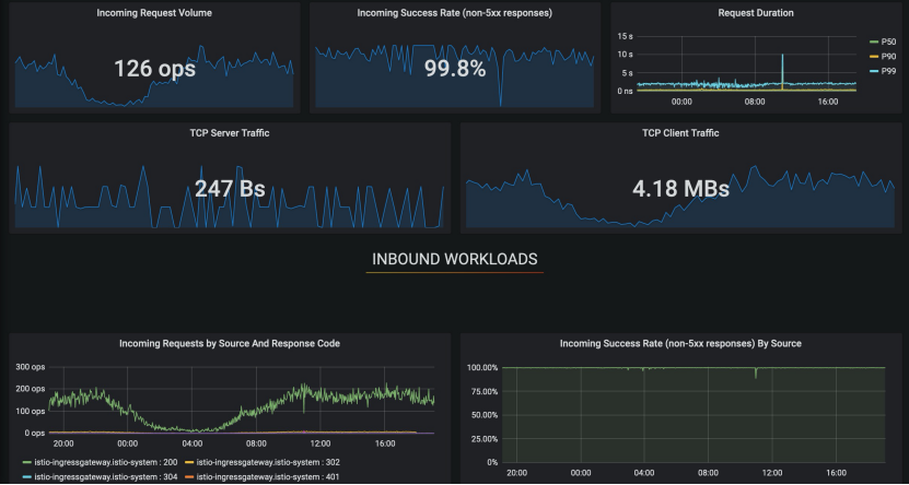 3. 流量管理:在去除掉 Spring Cloud 原有的熔断、智能路由等组件后,我们通过对 Kubernetes 集群内部一系列的配置和管理,实现了 http 流量管理的功能。包括使用 Pod签对具体的服务进程进行分组(例如 V1/V2 版本应用)并实现流量调度,通过 Istio 内的 Destination Rule 单独定义服务负载均衡策略,根据来源服务、URL 进行重定向实现目标路由分流等,通过 MenQuota、RedisQuota 进行限流等。