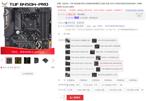 TUF B450M-PRO GAMING主板——B450M板皇 到手仅729元